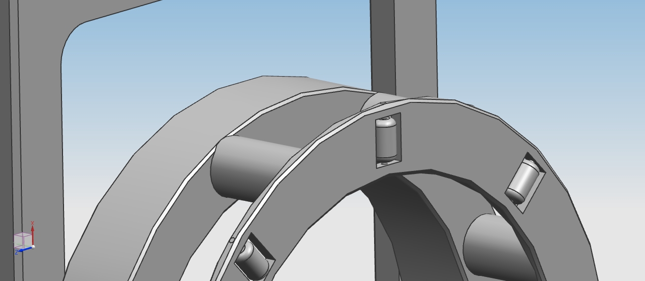 Mijn idee was om twee draaiende “blokken” te maken waarvan één met een koppelingskabel tegen de ander getrokken word zodat diegene die met de krukas meedraait de andere meeneemt door de grote hoeveelheid wrijving. De tegendruk en het “stabiliseren” nadat je de koppeling loslaat gebeurd door middel van een drukveer. De niet draaiende onderdelen worden in mijn model “gestopt” met kogellagers.