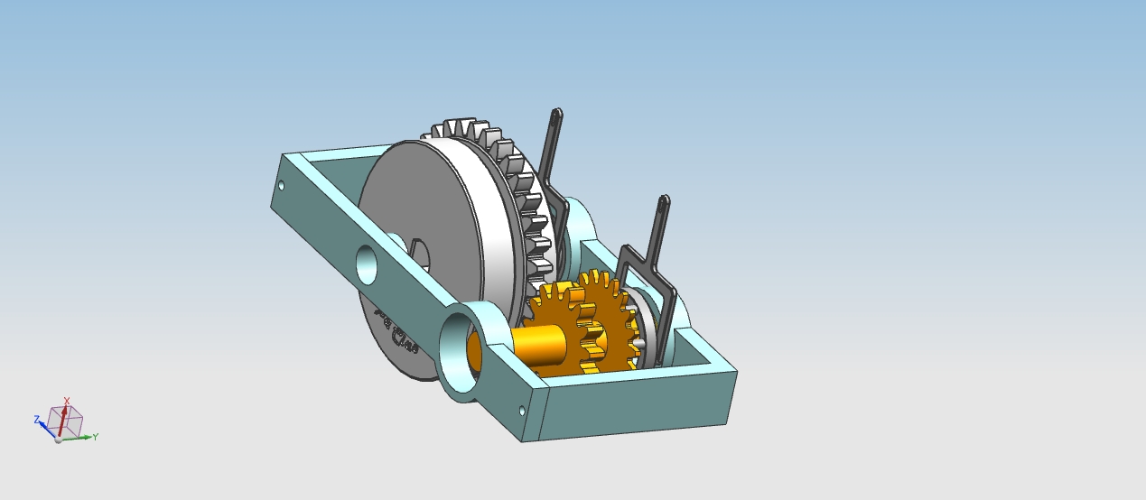 Dit brengt mij ook gelijk bij het probleem… Het laten bewegen van de secundaire as. Dit moet eigenlijk het liefst zonder het ketting aandrijvende tandwiel te bewegen. Op zich is het met een hendel niet zo’n probleem om hem in een bepaalde stand te krijgen.