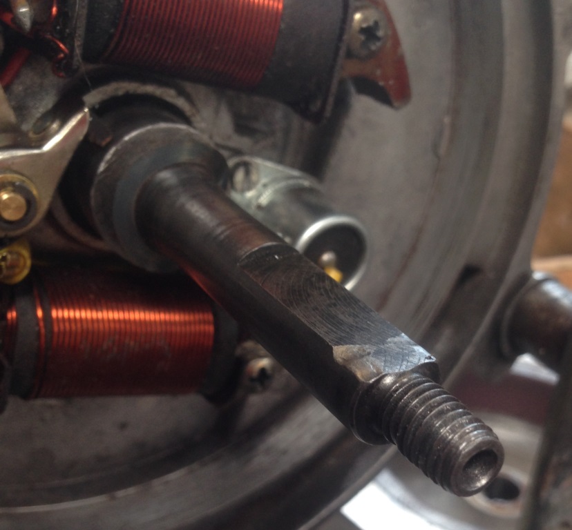 – De lichtspoel is ietwat beschadigd. Die zal het wel nog doen toch?Het is een racekrukas (merk kan ik niet zien vanuit de cilinderboring), dus het zou jammer zijn om de krukas te moeten vervangen. Maar hoe kan ik de problemen anders proberen op te lossen?