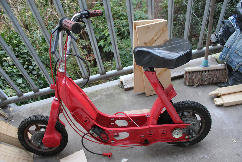 Ik verkoop het frame, de wielen, poelie en snaar (geen zadel en stuur).