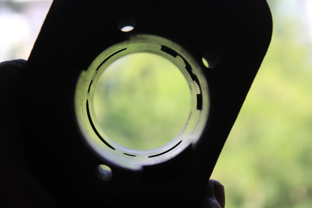 43mm kit racing met mooie wand. De uitlaatflens is zo bewerkt dat hij ovaal is en dus niet goed afsluit. Misschien een kwestie van oplassen of gewoon een nieuw net pijpje erop lassen (misschien wel nen dikken?). 12 pen polini zuiger met lichte warmloopsporen. Veren zitten er ook bij, maar misschien is deze mooie cilinder een nieuwe zuiger waard. prijs 50