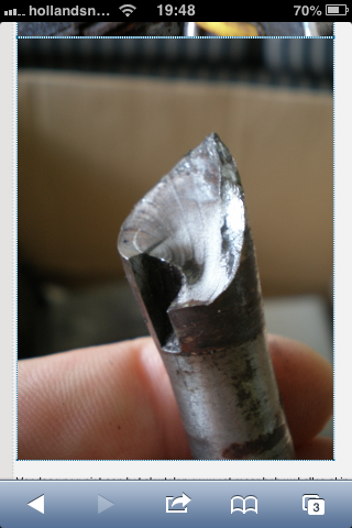 Na wat afstellen en een 81!!! sproeier te hebben gemonteerd leek alles lkkr te lopen, maar had toch het idee dat er iets mis was. Deo-test kwam niets uit, dus maar doorgereden, na een wat langer ritje gebeurde het onderstaande: