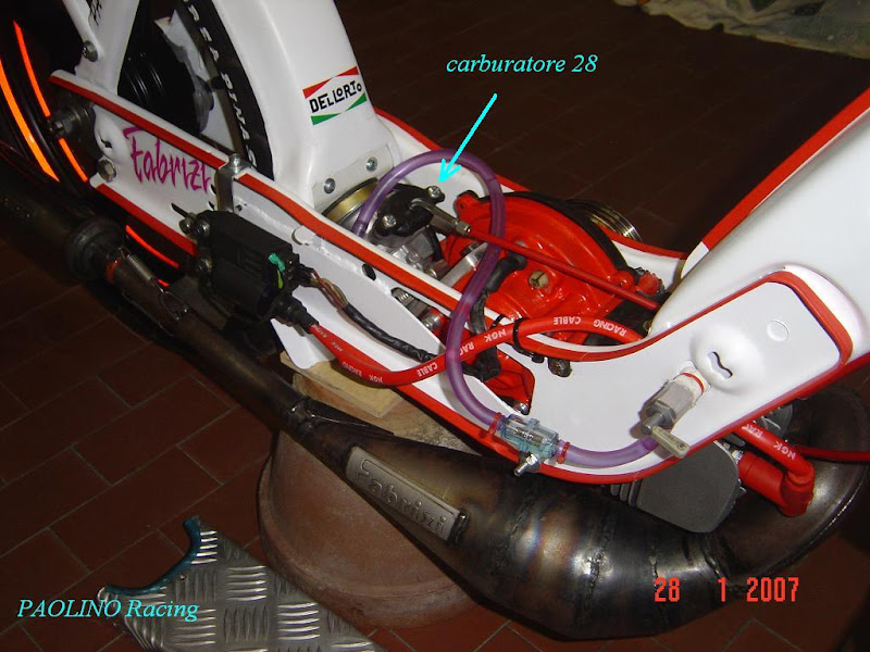 i knew you could probably stuff a bigger carb in a cita or possibly other vespa with a subframe swingarm, but i figured ciao would be more difficult.
