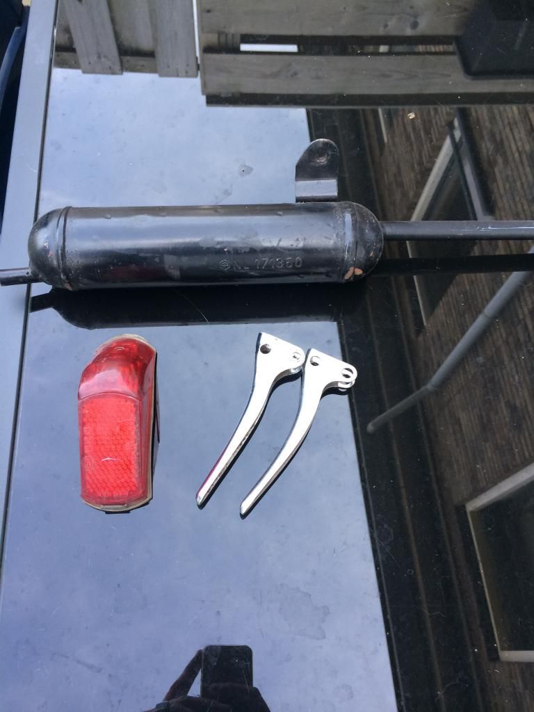 de juiste koplamp. Verder heb ik er een mooie originele uitlaat bij gekregen en nog wat spul. Weer een schuurvondst