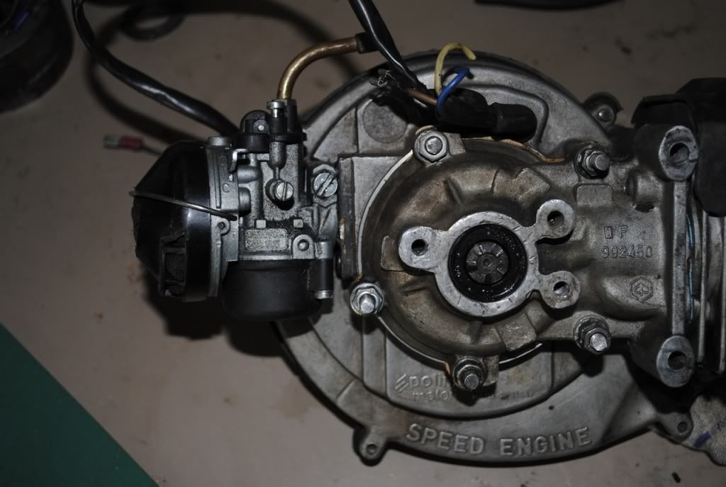 Als je kickstart hebt kun je niks uit je brug halen want het kickstartgebeuren zit op die plek.En als je geen kickstart hebt moet je heel wat uit je brug halen wil je de carb normaal op het spruitstuk kunnen schuiven.