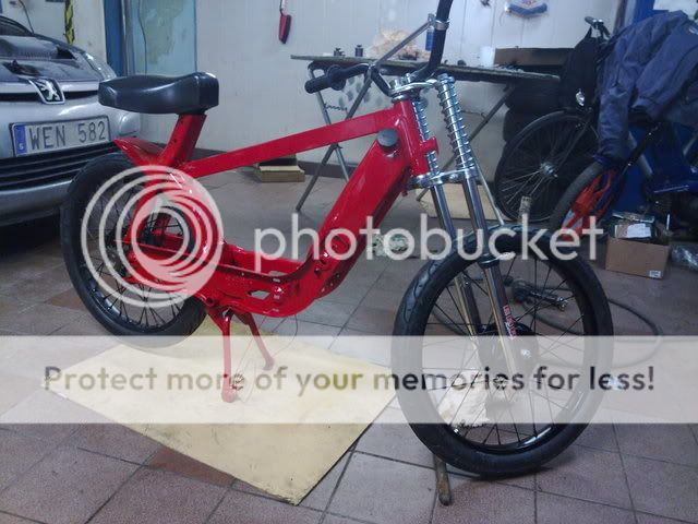 Nu börjar projektet bli klart snart :wub: har satt dit motorn nu, bara småpyssel kvar såsom bromshandtag etc.