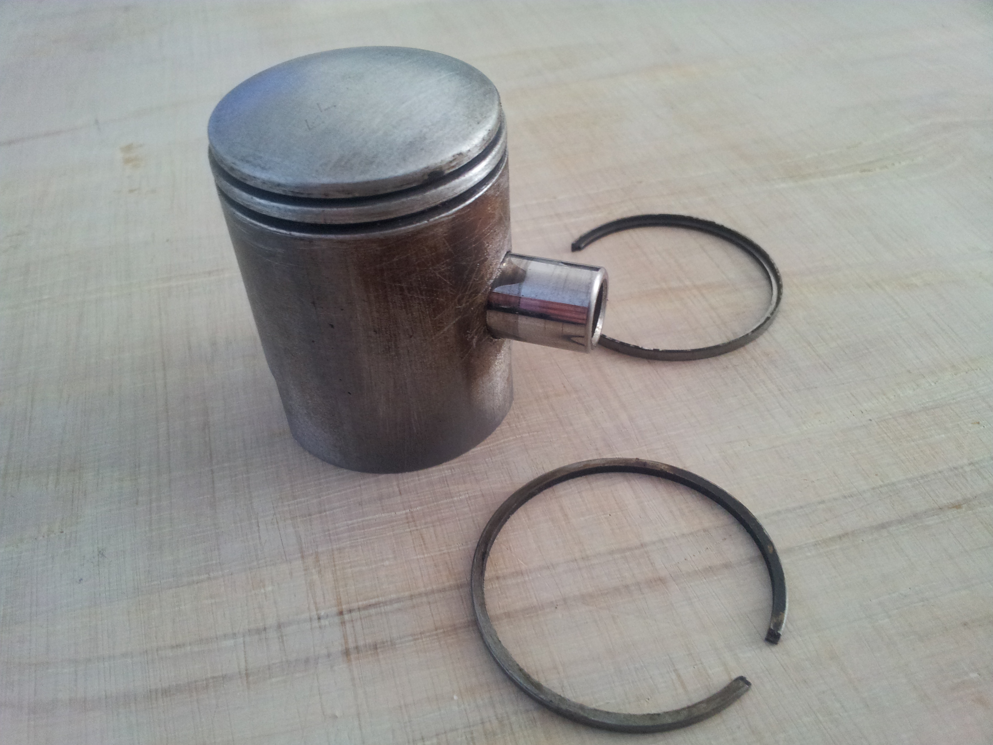 Dan zie je strepen en krassen in de cilinder en op de zuiger.