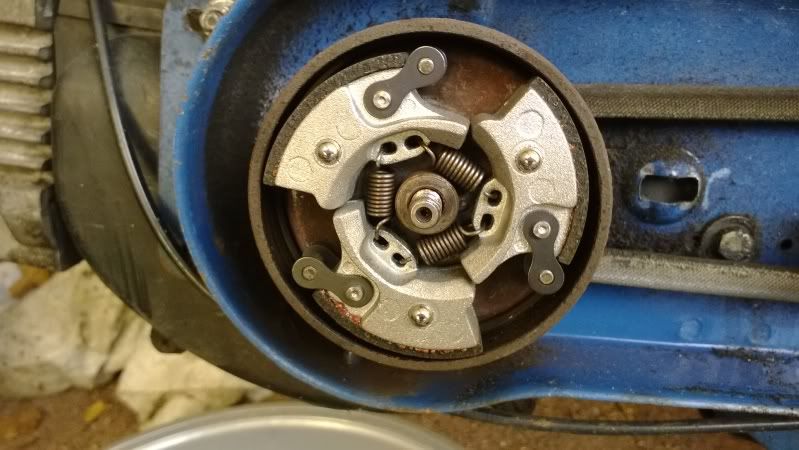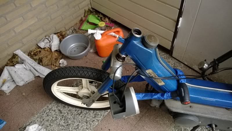 de koppeling sleept een beetje aan, kan ook roest zijn, maar hij loopt zonder al t veel problemen. Af en toe mist ie nog wel een vonkje, maar ik moet de bougiekabel nog vervangen, en de bougie zelf is ook 20 jaar oud. Maar die borstel ik nog wel even schoon.