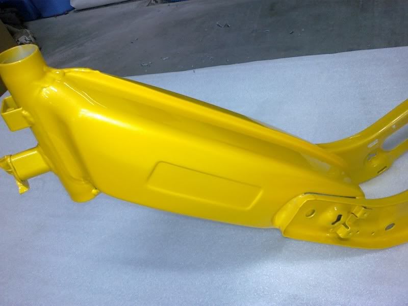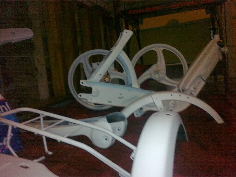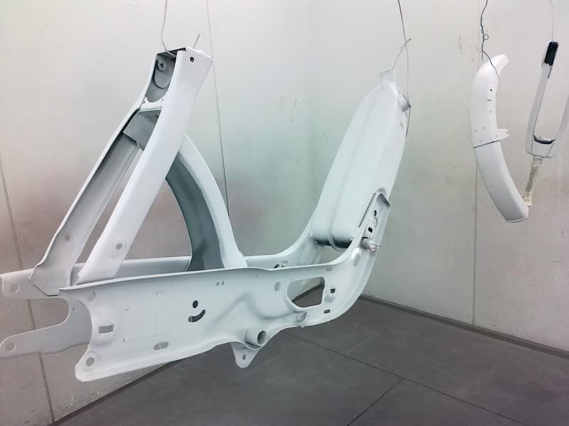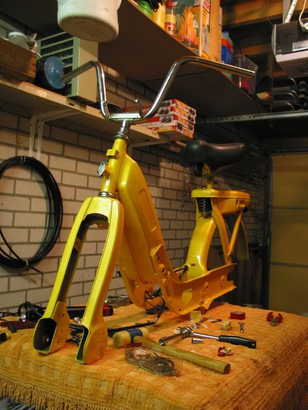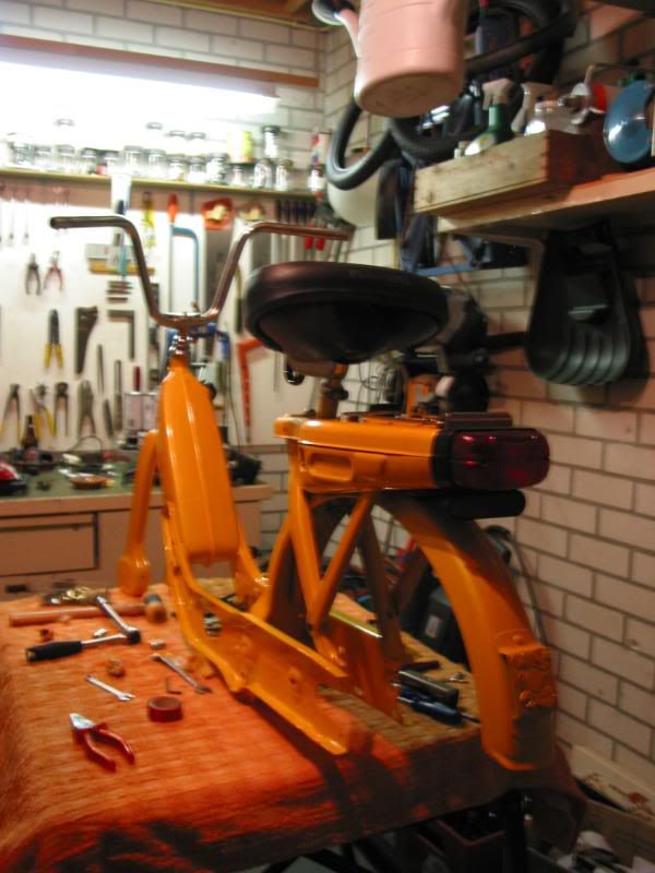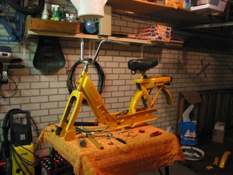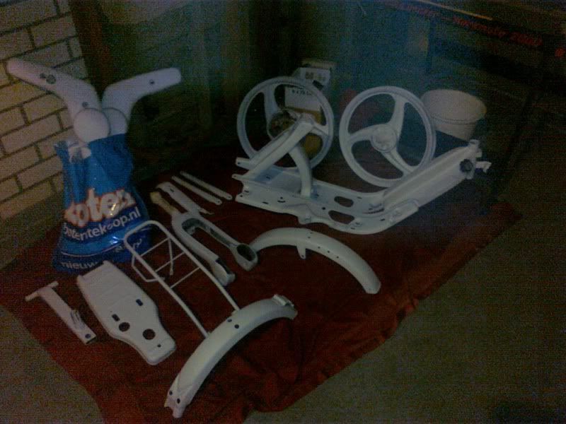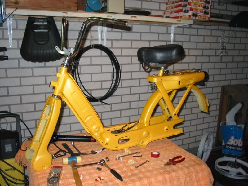 Op dit moment staat de brommer in de verbouwing, wordt voorzien van een vers laagje lak. Niet omdat de oude niet mooi was, maar omdat ik het gewoon mooi vind! Ik reed eerst rond, met een proma mini uitlaat. Maar omdat deze toch niet helemaal lekker vast wilde heb ik net een bestelling gedaan bij JMPB. Hier heb ik een aantal dingen voor de brommer gehaald, waaronder een stnd uitlaat Dik model. En een Malossi koppeling.