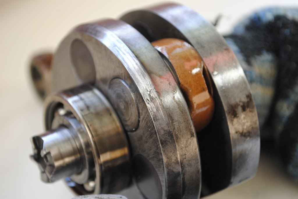 Het verhaal van het persen en dat de lagerpassing daar een paar honderdsten door is uitgezet zou mogelijk kunnen zijn, maar alsnog wel vreemd. De krukas heeft een gehard laagje van buiten. Binnenin wordt het zacht.