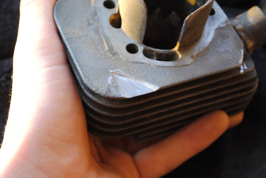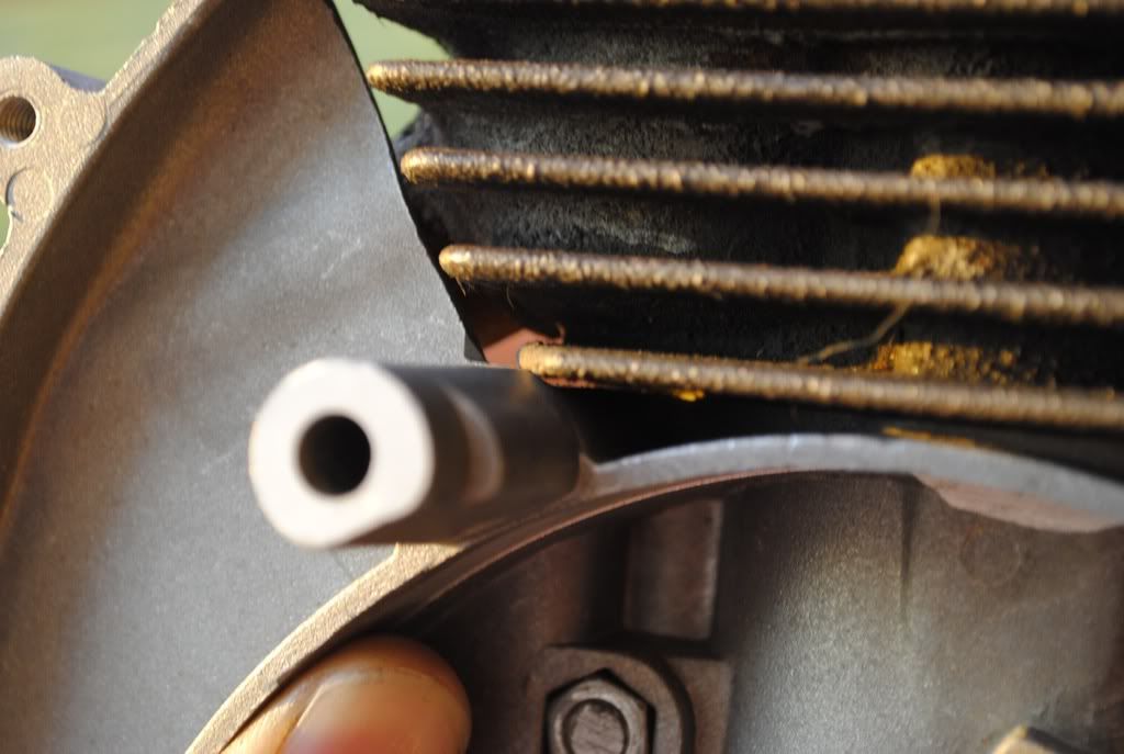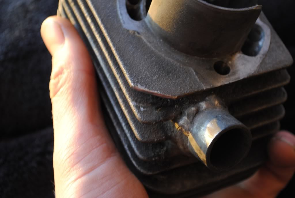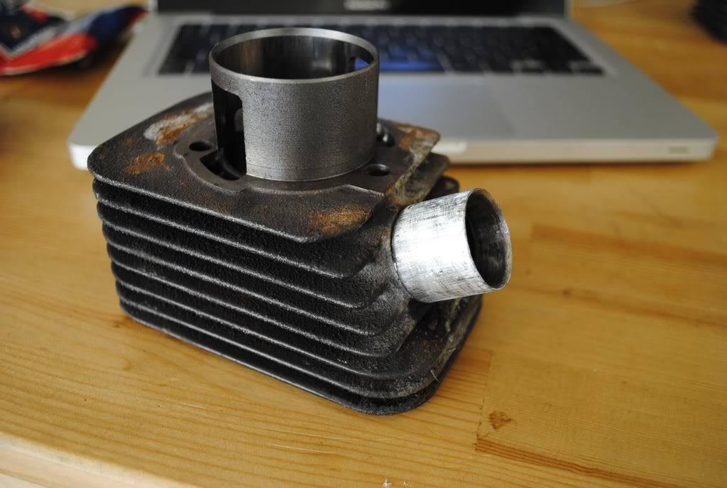 Dempertje komt van een oude Leo HM terugloop scooteruitlaatje.Ik heb geen zin om in mijn nieuwe kick SE te gaan vijlen en ik heb het idee dat het mengsel toch slecht in de boosters komt als je ze niet doortrekt in het carter, daarom heb ik even een kleine aanpassing gemaakt aan de Polini 46: