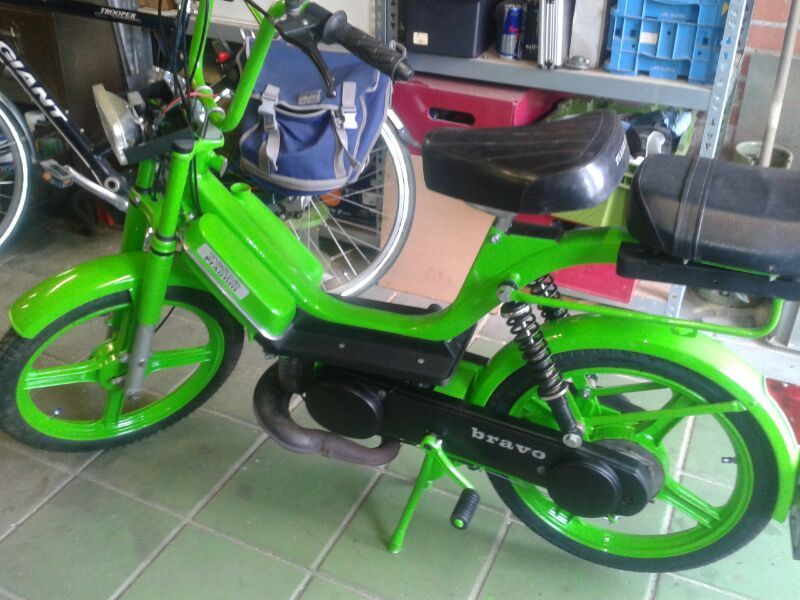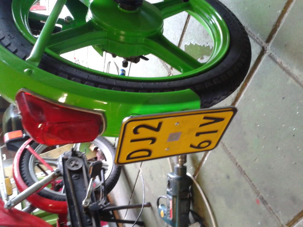 Wel geschikt hij nu over een kenteken met een 1’tje erop, verloren inclusief gelaste bevestiging op het spatbord.Nog steeds erg tevreden over de dmp 55cc cilinder, rijd erg netjes meer trekkracht dan orginele. Gaat regelmatig lekker lang de overtoeren in. Wel meng ik mijn benzine met deze cilinder met meer olie, richting 1:40 inplaats van 1:50