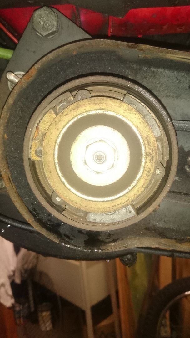 Toen van de rode bravo de v-snaar gespannen, was niet nodig, want de koppelings schoentjes waren versleten…en gingen ook niet meer normaal terug naar binnen.