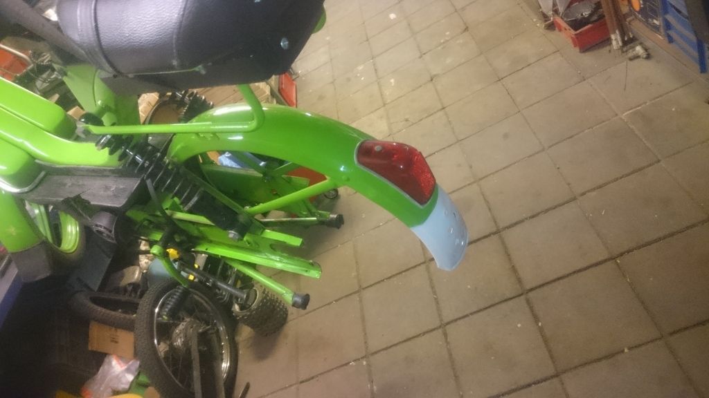 Tevens het achterspatbord netjes gemaakt met een wit vlak, want heb van de groene kleur niets meer.