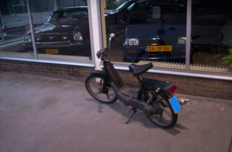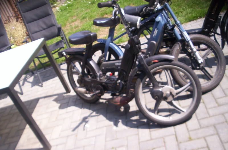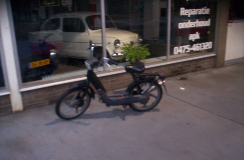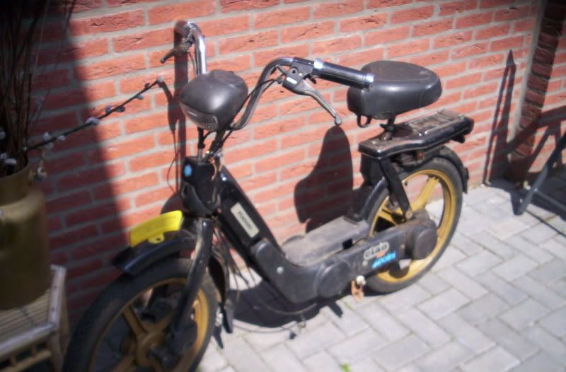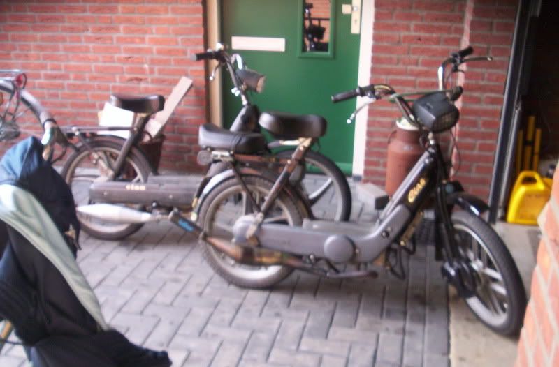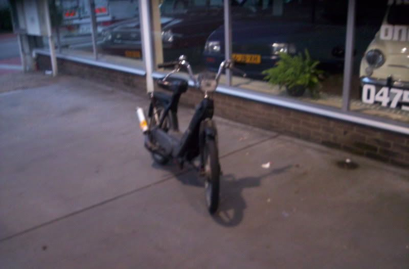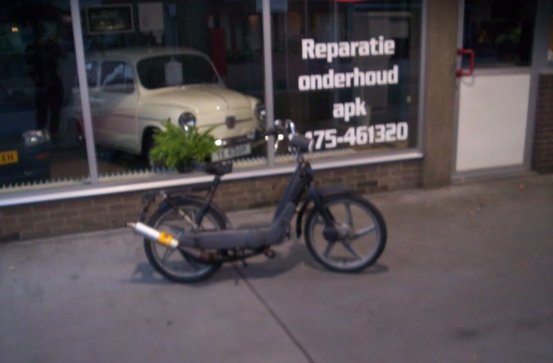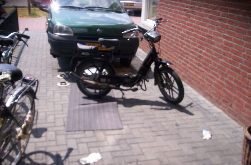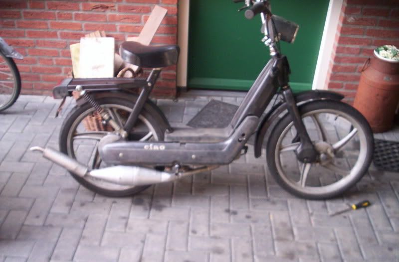 thom-ciao kwam van het weekend terug van Salou en hij had de neos verkocht dus hij heeft geen brommer meer [alleen een si maar die ligt nog uitelkaar en heeft ook nog eens geen kenteken] nu had die ook nog eens de fiets kapot dus hebben we vanmiddag mijn snor ciao maar even klaar gemaakt en blok inelkaar gezet voor eronder zodat hij vanavond vervoer heeft naar zijn werk 😉