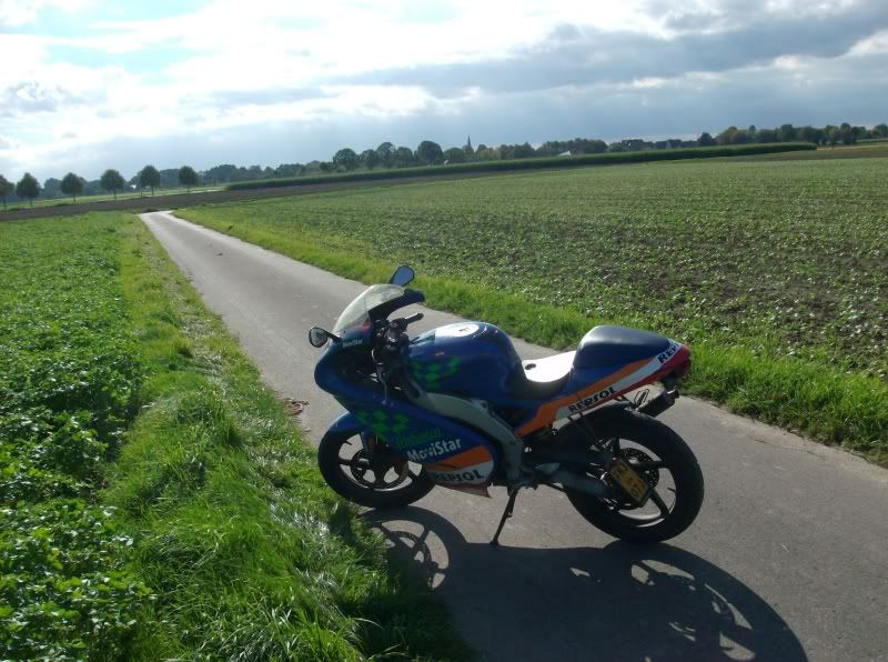 9 oktober 2010 om 14:54 #464886gisteren had ik de RS ff het blokje onderhanden genomen, ff wat onderhoud gedaan. Dus ik ff test rondje maken zonder kappen of helm of niks.. rijd erg lekker maar toen begon mijn wiel ineens te zwaberen als een gek met 80, net niet op mijn plaat gegaan 😐