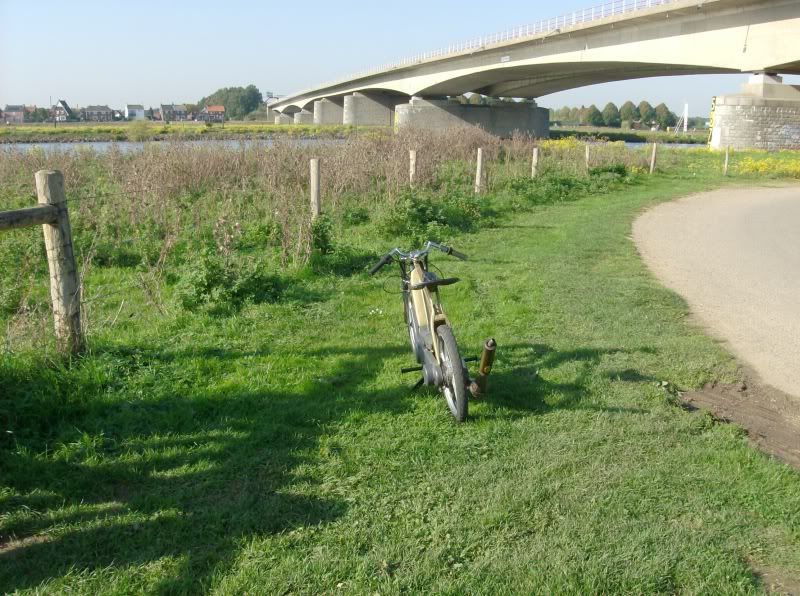 en maandag/gisteren/vandaag ben ik met de zwarte ciao met 10 spaaks bezig geweest.