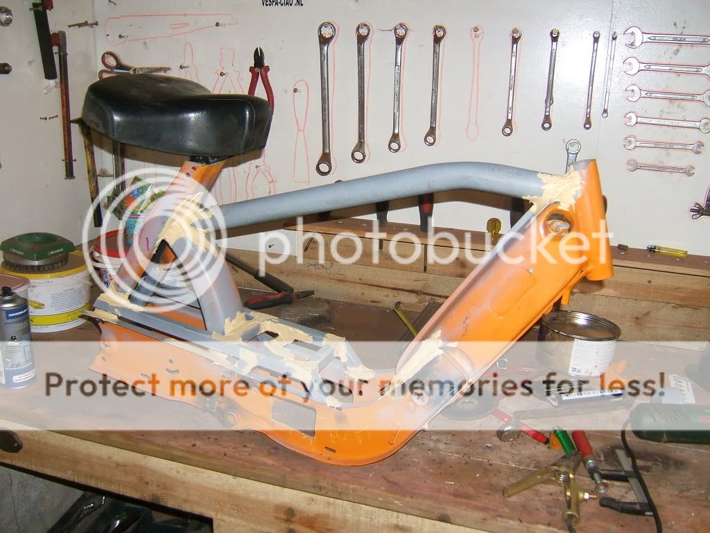 Aangezien het oranje oldtimer frame toch al niet meer origineel was heb ik dit frame genomen voor m’n nieuwe brommertje: