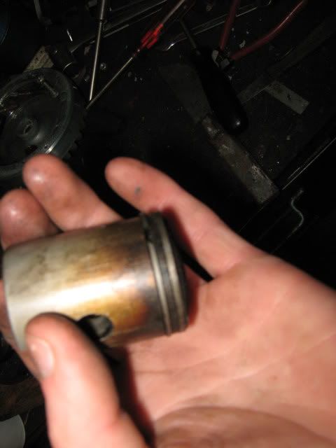 cilinder is in orde. zuiger heeft wat geleden. Er is een van de vijf boutjes losgetrilt die mn karters bij elkaar houden, en zo tussen het draaiend vliegwiel gekomen, KLAP dus. mn hele onsteking aan de gort.. . hoe de neuk kan dat boutje eruit :S