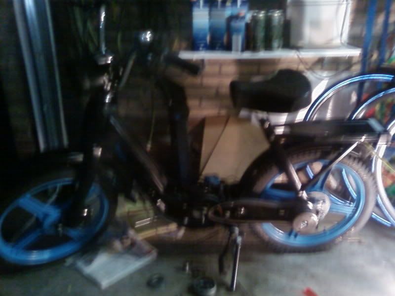 uitgehaald en zo een tijdje op gereden (want ik had nog geen certificaat). Hij reed toen ong. 50 km/h. Toen is van ut een op andere moment de zuiger aan de krukas vastgesmolten ?:con Daarna liep hij weer, maar duurde erg lang om te laten maken.Ik wilde hem toch een beetje pimpen: dus ik d8 zwart met blauw, das wel wat.