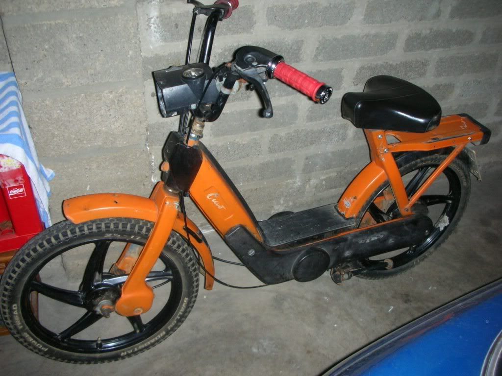 Over de kleur ben ik nog aan het twijfelen. Oranje zwart zoals hij nu is vind ik ook wel een leuke combinatie.Nog even een foto van de ciao met kenteken wat ik gekocht heb: