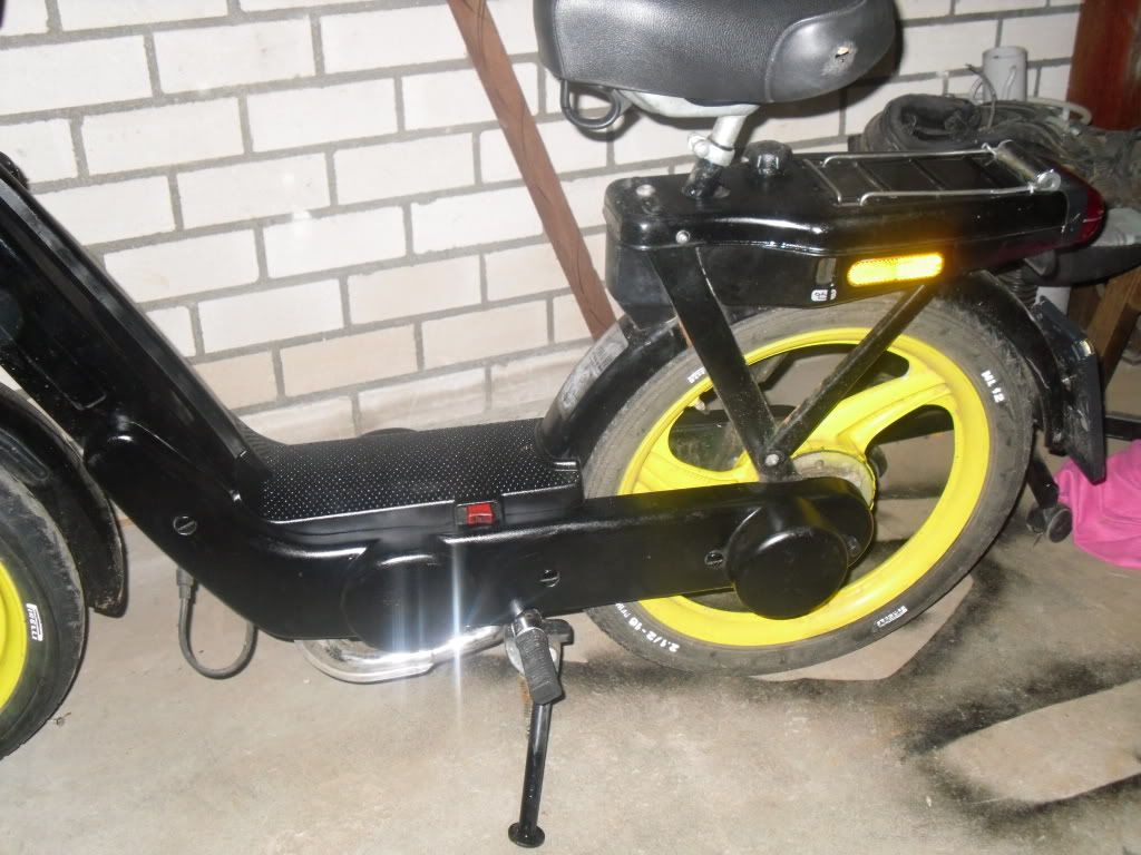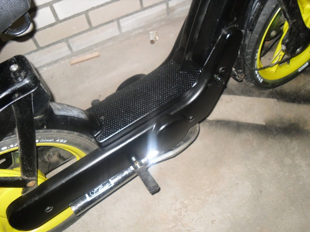 Update: De brommer is nog niets gepoetst maar ik heb zelf mijn kappen en treeplankje mooi zwart gespoten. Staat hij er niet netjes bij?:D