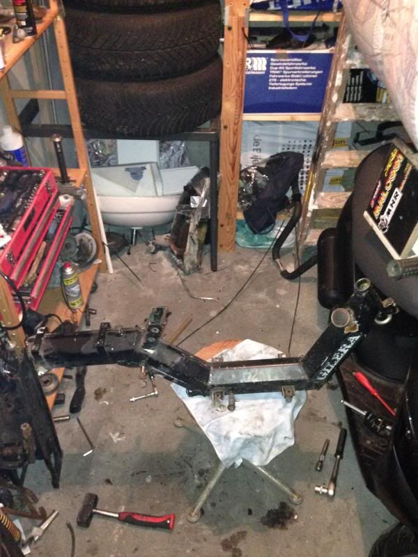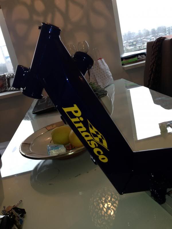 Achterbrug heb ik verstevigd plaatjes erin gelast helaas geen foto van genomen,wielen brug frame voorvorkdelen naar de coater gebracht duurt ongeveer een week voordat het klaar is !