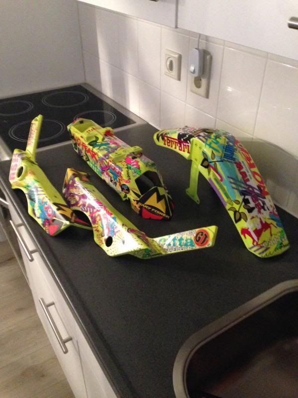 Zeer nette brommer! Ben wel fan van het stickerbomben. Heb je bewust gekozen voor maar een achterveer te gebruiken? Ik ben benieuwd naar hoe hij uitziet als ‘ie af is! :thumb