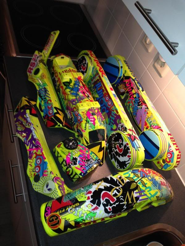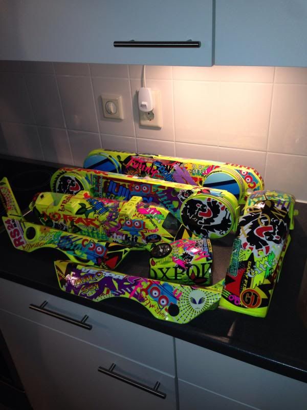 Nou het was me wel ff een dagje,ben helemaal uitgestickerd nu zijn alle kappen klaar om na de spuiter te gaan voor een blanke lak eroverheen.