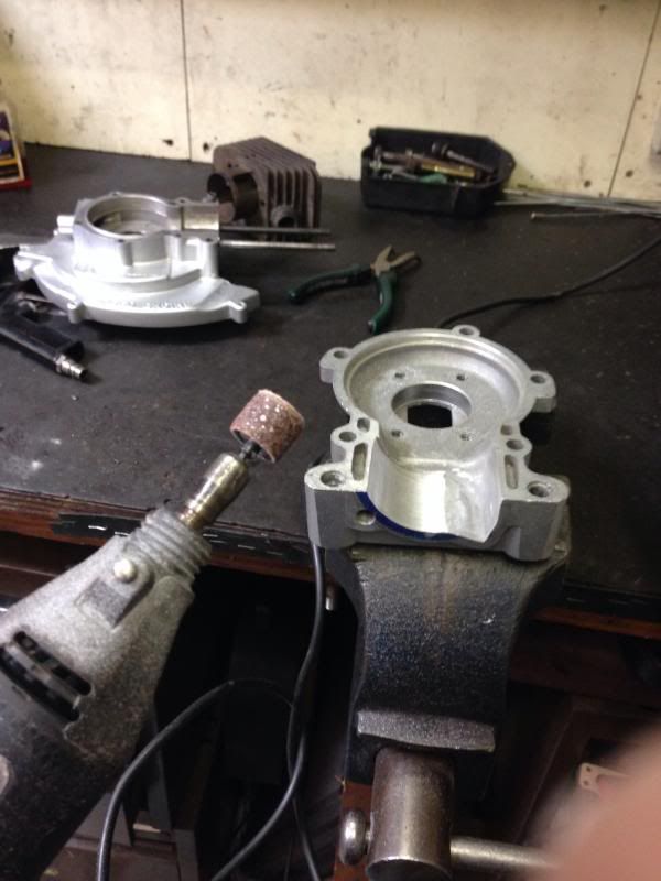 En helaas was het Pinasco zij inlaatje niet voor 80cc,dus dremelpower 8)