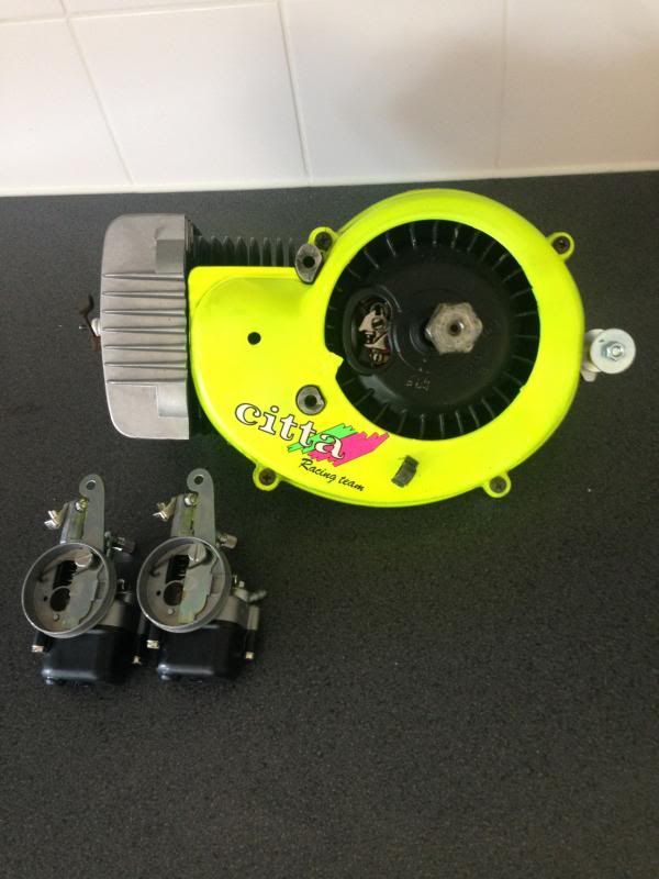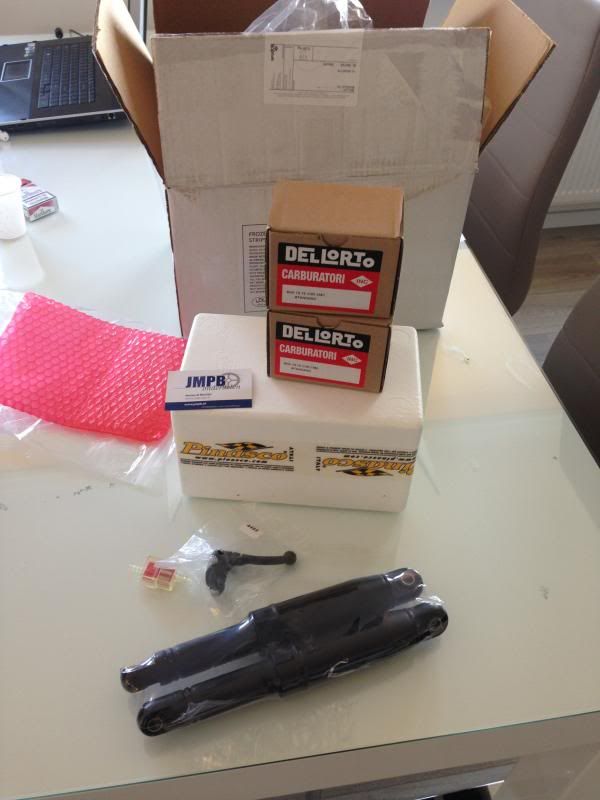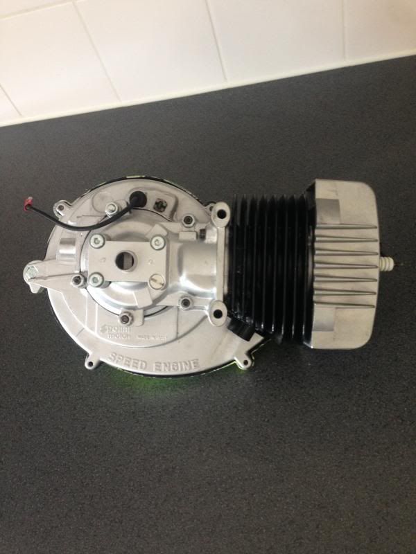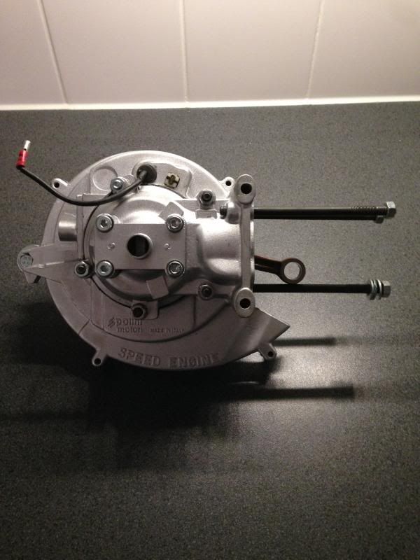 Toen de Speed Engine inmelkaar gezet met nieuwe lagers kering,en een Afgedraaid 564Gr vliegwiel,Pinasco cilinder en de carbs en schokbrekers heb ik gistr besteld bij JMPB, ik hoop dat het er morgen is dan kan die aan :bier