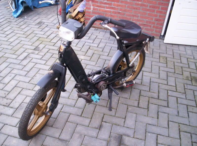 mijn gianelli excel fire 😀 [loopt aan de foute kant!]Hij trekt goed op en de top zal zo’n 50 zijn, wat hard zat is om een beetje chillie mee rond te toeren zonder helmpie op.