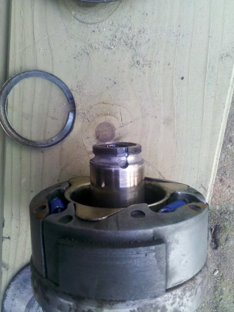 25 april 2011 om 00:21 #486185mwah. die is inderdaad los komen zitten. de pinnen op de achterste schijf zijn zo te zien ook niet meer aanwezig. Enigste optie is laten lassen, kan je alleen de drukveer niet meer vervangen.