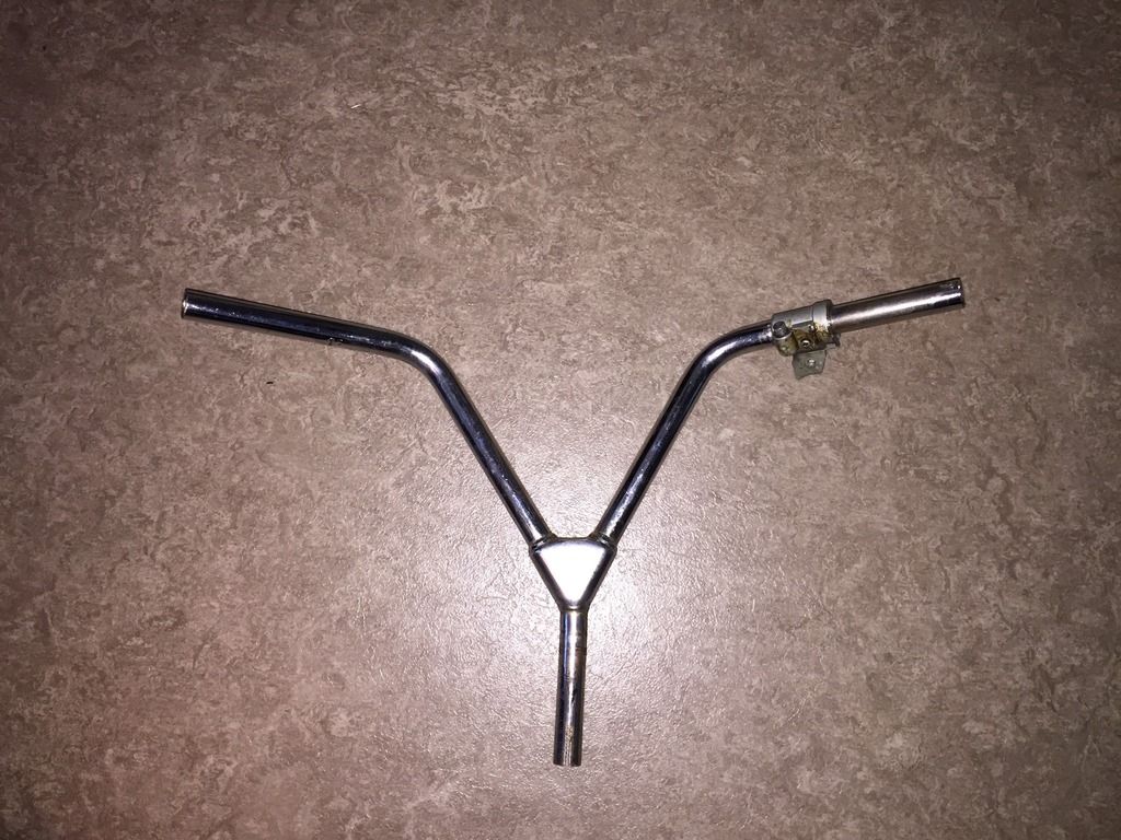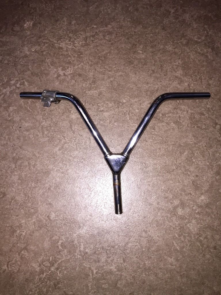 Oldtimer V stuur, zonder pen(deze is gebroken) Verder net chrome.