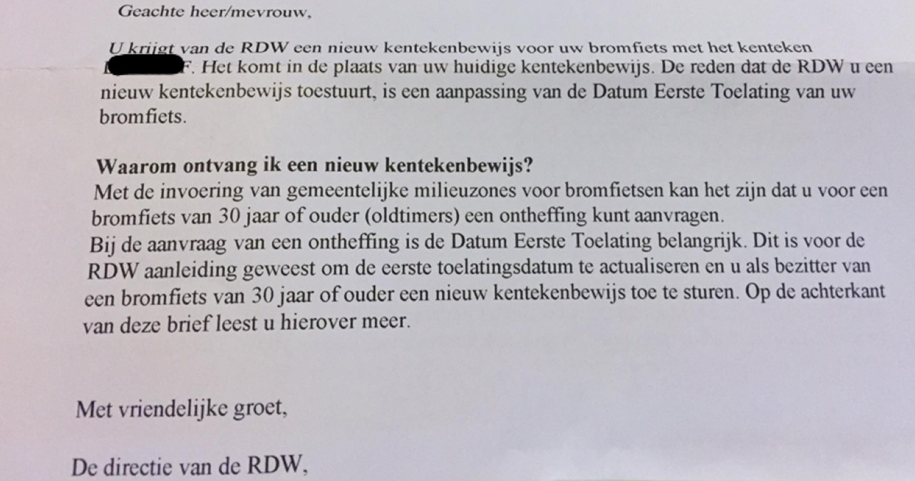 Dit heeft natuurlijk te maken met de milieuzones voor oltimerbrommers die ze willen gaan handhaven,