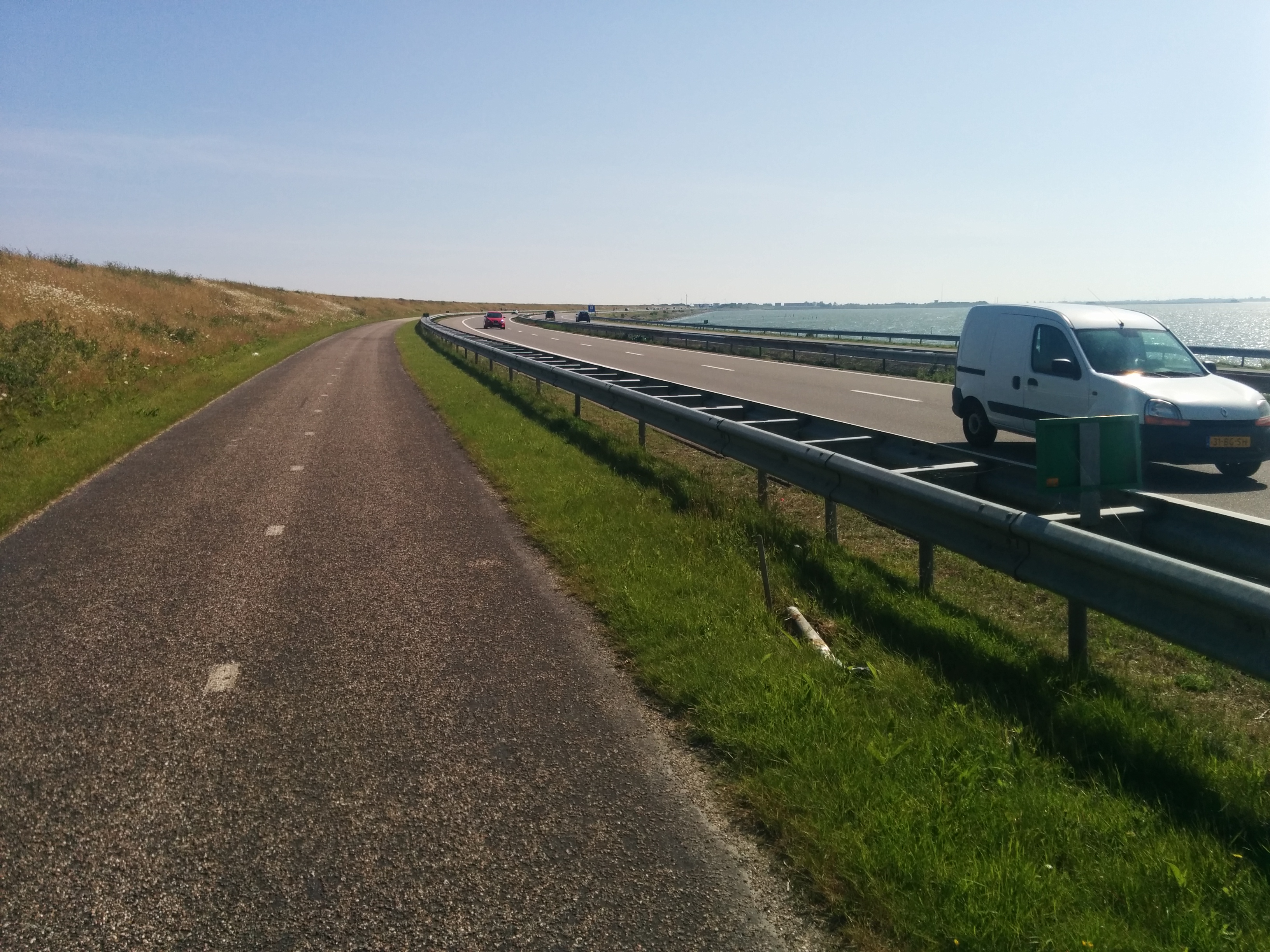 In de ochtend een stuk kunnen rijden en midden op de afsluitdijk liep Alex zijn RV kapot. Lager stuk en vliegwiel had aangelopen. Geen probleem, want we hadden een extra blok mee.