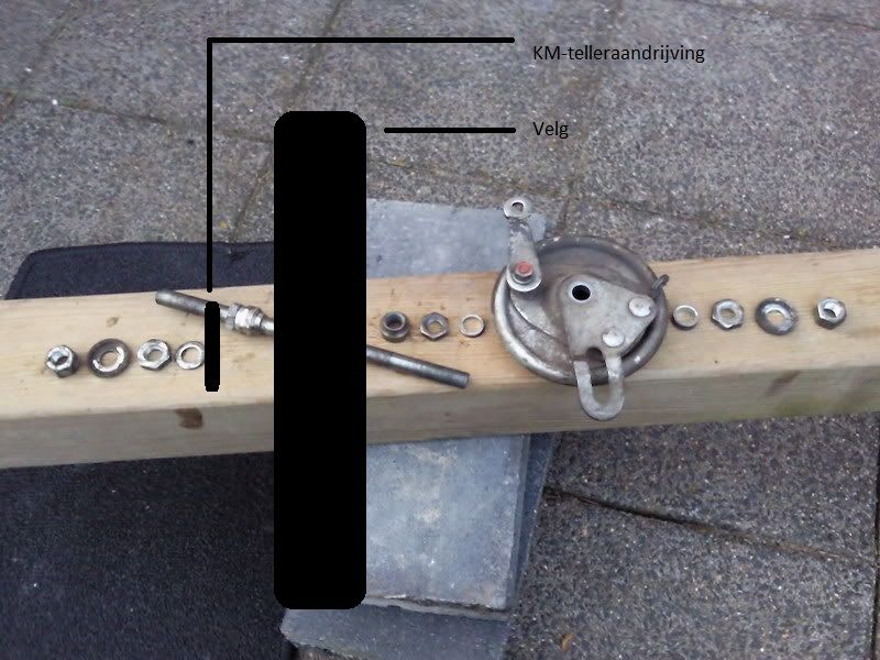 Er is overigens soms ook nog een ringetje nodig tussen de teller en de platte moer (zie 4 en 5).