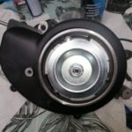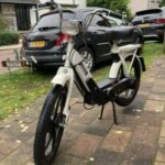 Toen ik naar Winterswijk (ca 90km) was geweest, ook via de Oude brug Zutphen, bleek ik bij inrijden van Ede een zachte achterband te hebben. Met deze band ‘volgas’ vooral nog afstand afleggen. Ongeveer 1km van huis toen was ie echt volledig leeg. Tsja, dan is het lopen met de brommer aan de hand en het motortje het werk laten doen. Op 150m van huis liep de complete achterband er vanaf. Brommer geparkeerd en alle losse spullen eerst naar huis gebracht. Toen met de opgetilde achterzijde laatste stukkie naar huis gelopen.