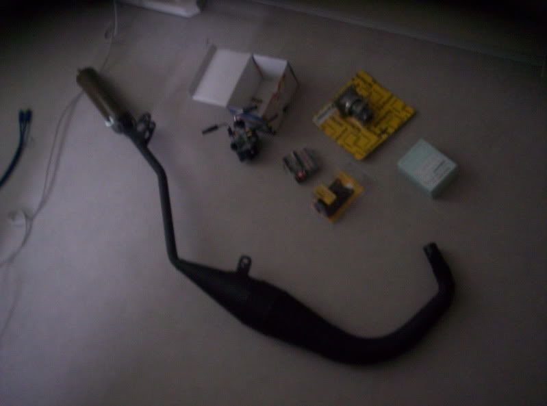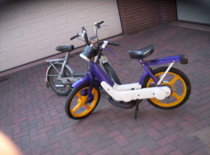 blok afgebouwd waar ik maandag aan begonnen was. Velgen in het frame gezet en het blok eronder gehangen. Doet het goed :D, alleen morgen ff de gaskabel vervangen want die is kapot, en eigenlijk ook geen achterrem maar die heb je niet perse nodig om te rijden :lol