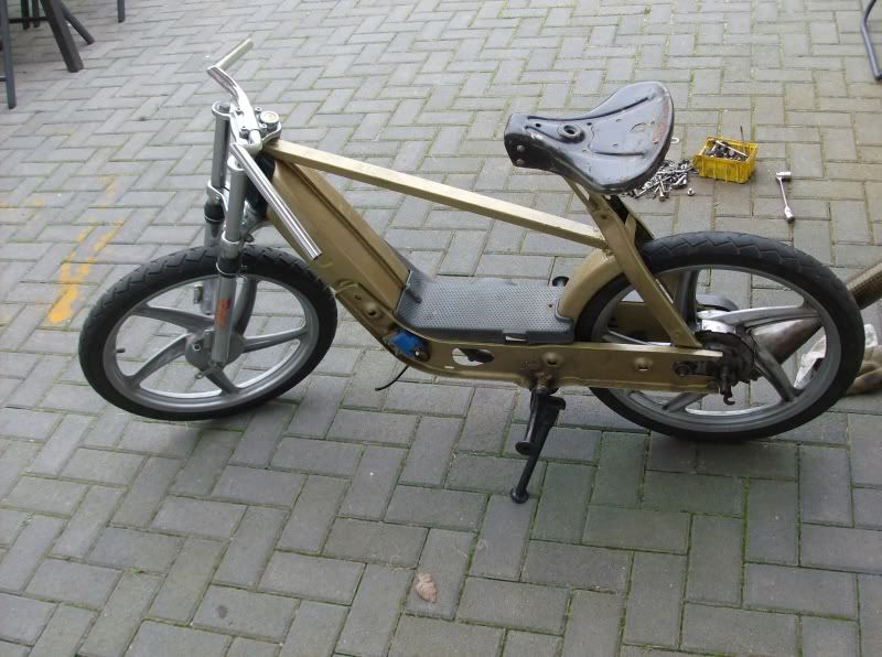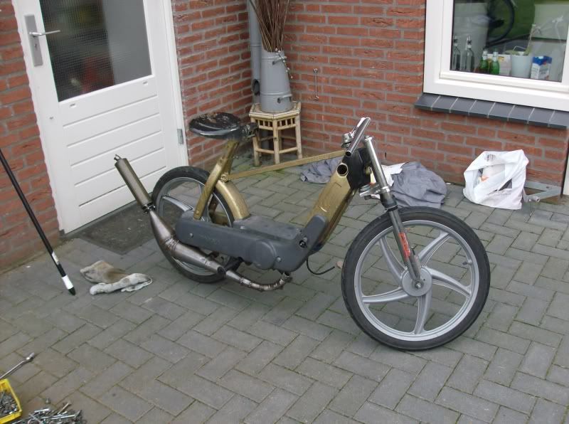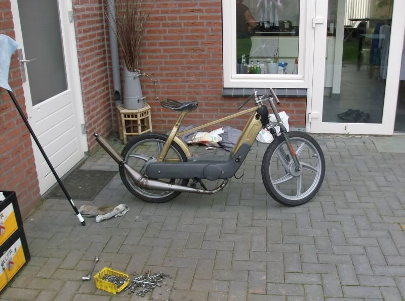 zondag heb ik alles klaar gemaakt en in elkaar gezet. Alleen de koppeling pakt niet aan, alleen als je achteruit loopt. Dus ik ga er straks even ee nandere koppeling op proberen. Dan even kijken dat als hij loopt dat die ook goed loopt en dan kan ik beginnen met het afwerken van de brommer want dat hij klaar is is dus nog lang niet het geval he…[Lees meer]