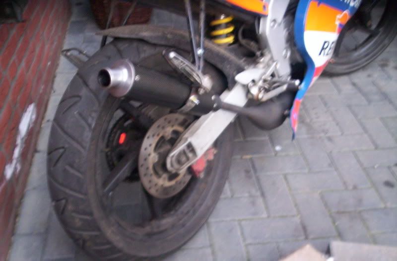 Hij loopt wel al, morgen wordt hij goed afgesteld en word hij mooi afgewerkt. [2 5 spakers erin, voorspatbordje, slangen inkorten etc etc]