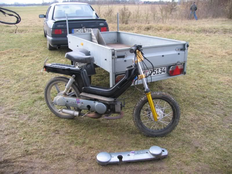 ik heb hem een 50cc cp blok in onderdelen erbij gedaan dus op het moment loopt hij niet. Ik hoorde dat hij er grote plannen mee heeft dus toen heb ik hem best gematst maar nu kan ik teminste zonder problemen/moeite bij de diepvries komen dat is ook wat waard he 😀