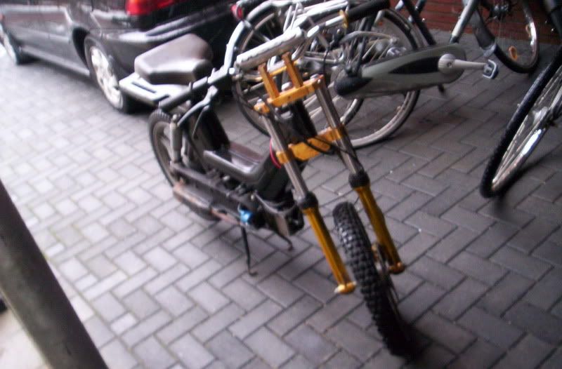 ik heb de si opgebouwd met pitbike vork opnieuw en vandaag stukje gecrost.